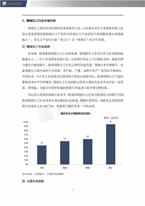 相比发达国家的精细化率水平,我国的精细化工行业仍具有较大的提升空间。我国精细化工行业尚未形成完整的行业体系,精细化率较低。目前发达国家的精细化率基本上在60%~70%,而我国大概只有其一半的水准。