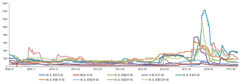 各类维生素产品价格的周期性变化: