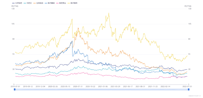 这个时代一直不变的就是一直在变,中国医药行业更是如此。近3年(2019.7.1-2022.7.1)医药生物(申万分类)中各子行业的估值水平都表现出相似的变化趋势,即不同程度的先升后降。这种趋势的成因主要为新冠疫情和重大行业政策,若干突发的行业事件也起到了推波助澜的作用。