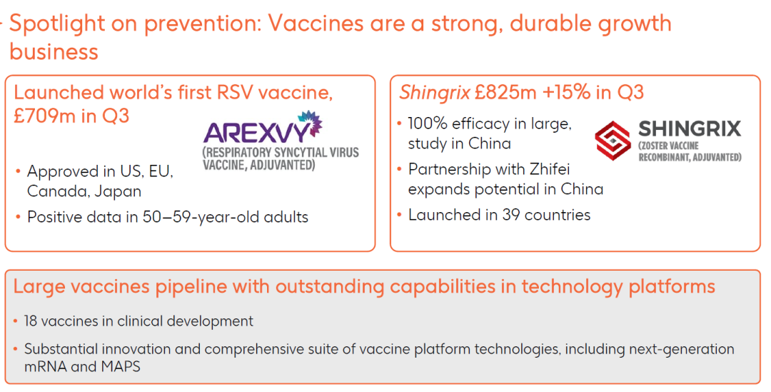 2023年前3季度,全球领军制药企业GSK(葛兰素史克)的疫苗整体表现尤为强劲,销售总额达到32.2亿英镑。