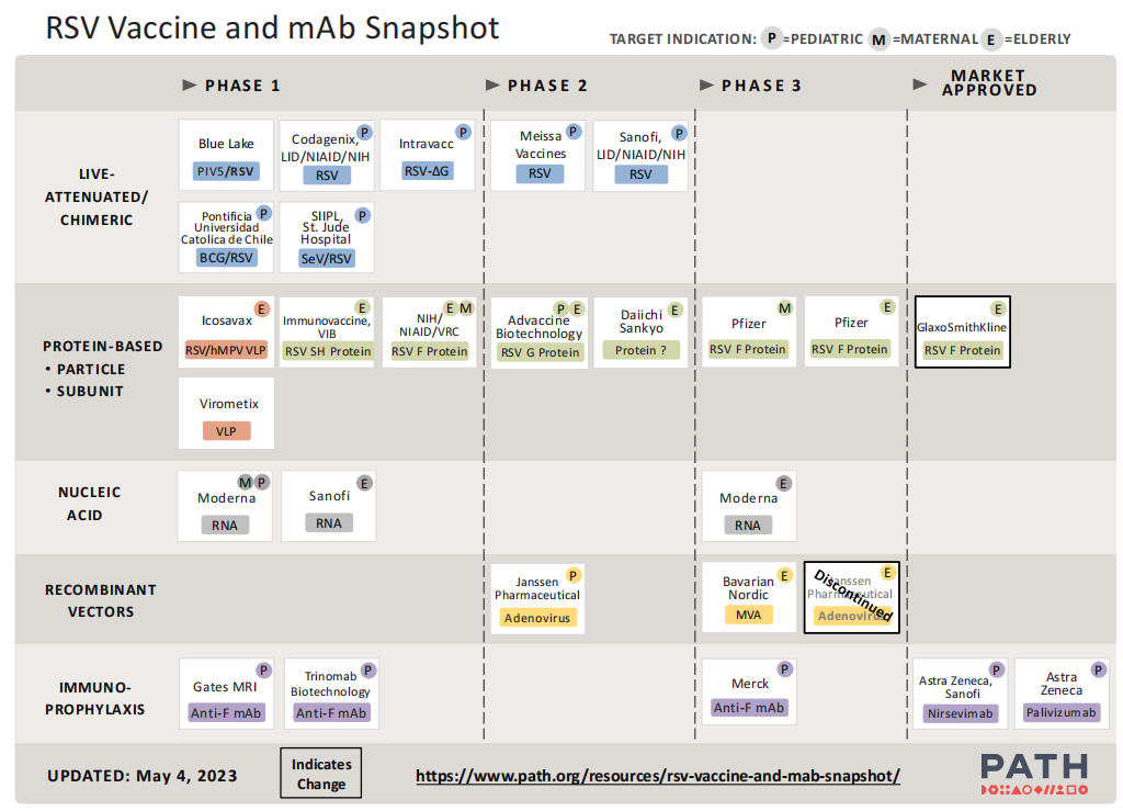 2023年5月31日,美国FDA首次批准Abrysvo(RSVpreF,PF-06928316)上市,用于预防60岁及以上人群出现由RSV引起的下呼吸道疾病(LRTD)。