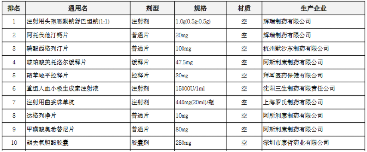 另外,阿斯利康生产的达格列净片从第八上升到第四。