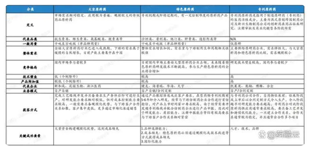 大宗、特色、专利原料药对比分析
