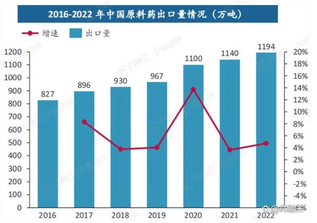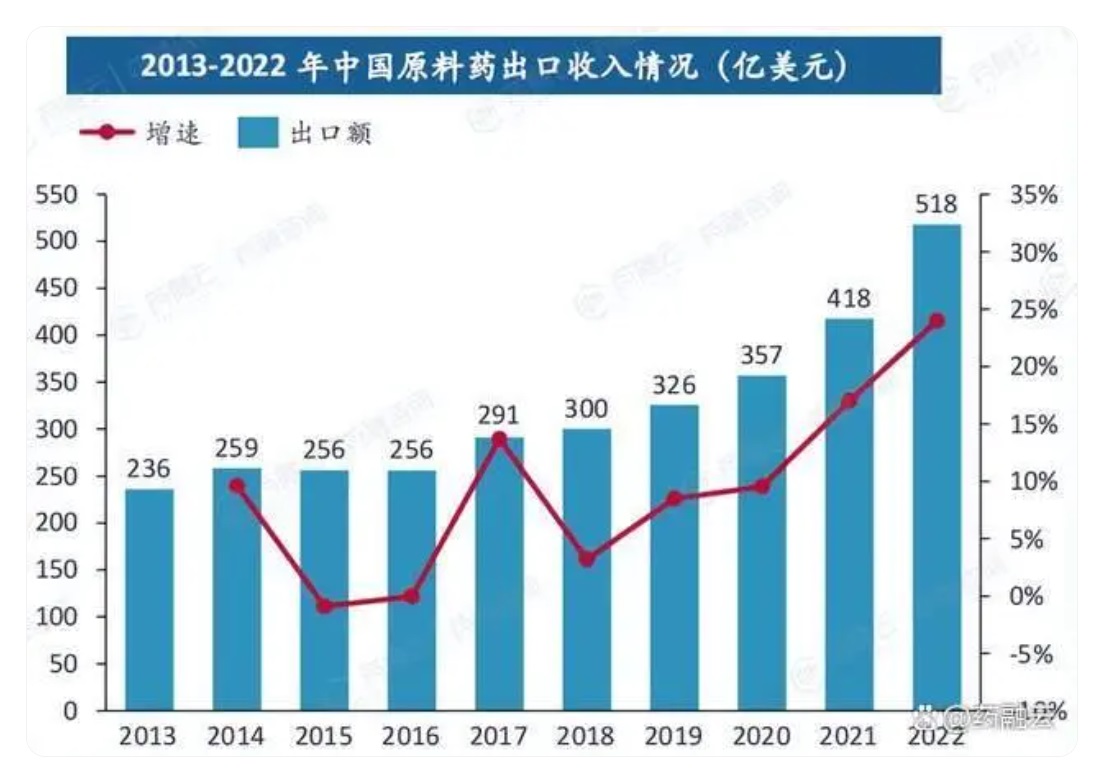 中国作为原料药出口大国,在全球原料药市场中占有重要地位。近年来,中国原料药出口规模持续增长,尤其是在疫情爆发后,出口收入增速明显加快。